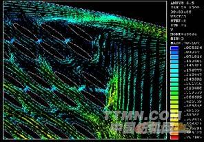 图7-3 采用ANSYS CFX对某机载电子产品冷却方案进行流场分析,