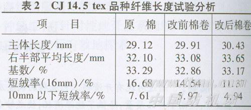 丝、棉结均大幅度减少,且棉层纵向、横向均匀度亦有所改善。以CJ 14.5 tox为例,经测试棉
