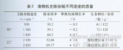 过去由于过分强调开清棉工艺的开松度和除杂作用,所以各机的开清部件速度比较高,但是带来棉结、短绒的高增长(表2)。