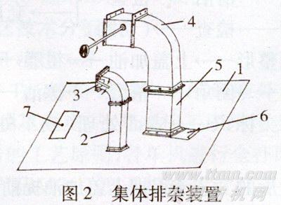 1-钢板;2—集体排杂弯管;3-调节板;4-工艺排风总管
