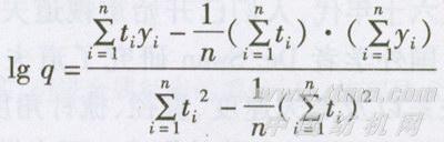 计算得ti与lgQdi相对应,在重复试验过程中lgQdi存在随机性波动,为了正确求得g值,可采用统计数学的计算方法,求得图1中的斜率lgq。