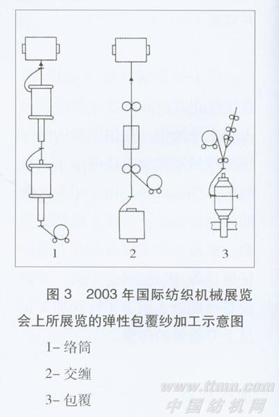 最近,Ratti已经拥行OMM,且展出了两个空心锭子设备。Muratec展示了其新型MVS喷气纺纱工艺,且在展览会的目录中突出强调这种工艺是如何特别适合包覆弹性纤维,弹性纤维接头良好,且没有芯子退绕现象(见图3)。