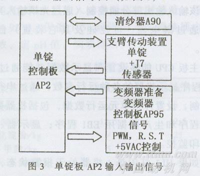 ESPERO锭子是完全独立的,每个锭子都有一块AP2单锭板和变频器控制的电机控制单锭运转,单锭板AP2输入输出信号图(如图3)