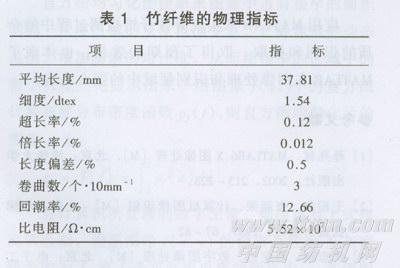 表1 竹纤维的物理指标