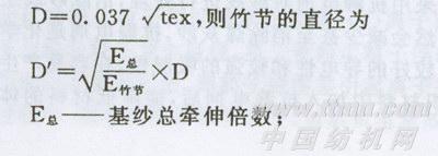 竹节的截面近似圆形,设竹节的直径为D,基纱的直径为D,根据环锭纺纱直径计算公式