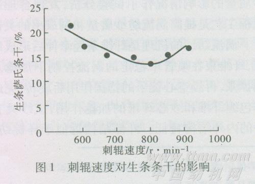 (3)适当提高刺辊速度,增强刺辊的开松梳理作用,同时提高刺辊纤维向锡林的转移能力,达到减少棉结和改善成纱条干的效果。