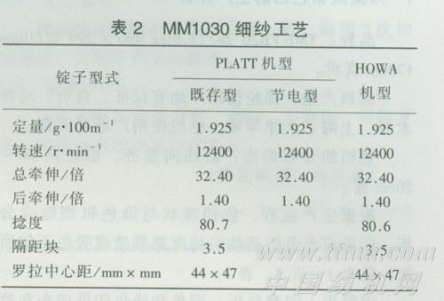 细纱机锭子转速要比纺相同支数的非色棉纱多加15%;捻度要多加1O%~15%;后牵伸倍数要适当减少;牵伸部位、锭子部位、毛棒和导条架等容易混入风棉的地方应彻底清洁,要彻底清扫吹风口。细纱工序与生产有关的用具必须保证没有异物,也不能污染。OTC的吹风口位置,一定要正确,中间要比上下部位的风强。细纱的工艺如表2。