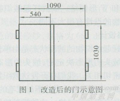 (3)将前“1”字形封闭镀锌钢板下边剪去100  mm,加装两扇门(如图1所示),便于挡车工清洁车肚和保全保养人员进入检查修理;
