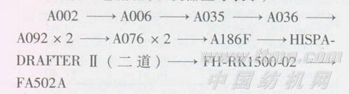 (4)每个方案纺两卷,每卷分三个条筒,在二道并条机上进行同眼试纺。为了试验方便,每道并条并合数均采用6根并合,将二道并条条子分成30个条筒,在粗纱机、细纱机上各取30个固定锭子进行试纺。