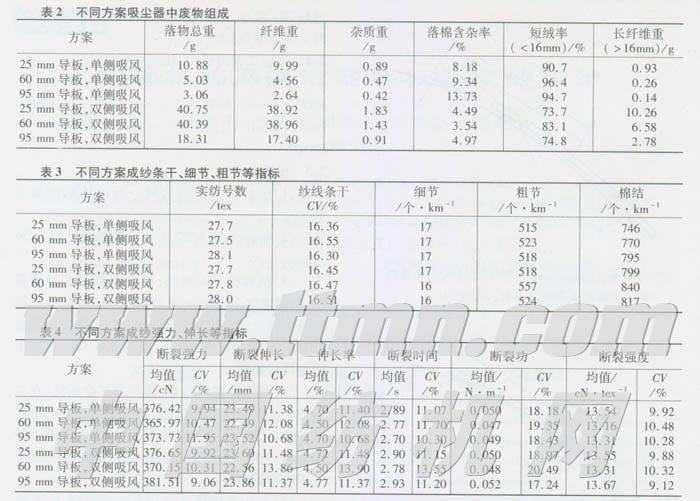 (1)棉网清洁器中导板长度对其排除废物量的大小有一定的影响,导板长度愈短,愈有利于废物量的排除。