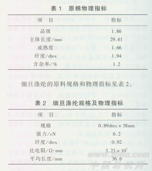 以纺JC/T60/40 11.7tex纱为例,其原棉物理指标见表1。