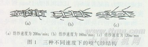 将试纺出的喷气纱放在显微镜下观察,成纱结构见图1: