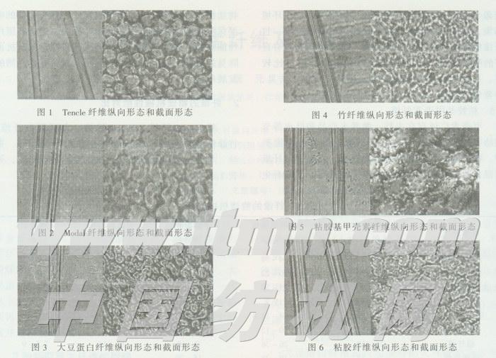 (4)Tencel纤维的截面形态是圆形,与涤纶、晴纶相似;大豆蛋白纤维的截面形态呈扁平状哑铃形和腰圆形,与维纶相似;蚕丝的截面形态为三角形,与截面为三角形的化学纤维相似;这些均可再用燃烧法和溶解法加以区分,判断出纤维素纤维及植物蛋白纤维还是化学纤维。