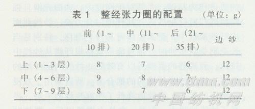 2.3.1车速为了使原纱质量能满足织造时所需的经纱张力和伸度的要求,通过试验,车速配置为35~40m/min。