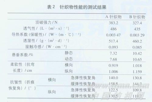 预处理后针织物规格:横密为68列/5 cm,纵密为65行/5cm,重量为206 g/m2。
