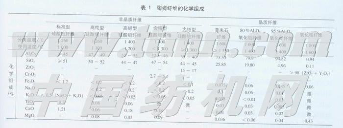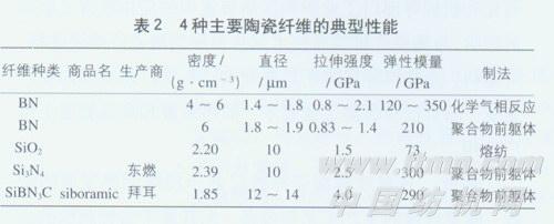 陶瓷纤维品种较多,其化学成分也不相同,因此其机械物理性能也有较大的差异,现选择具代表性的4种主要陶瓷纤维的典型性能列于表2。