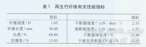 再生竹纤维具有较好的物理机械性能.以下是吉藁化纤厂生产的再生竹纤维的性能指标(表1)。