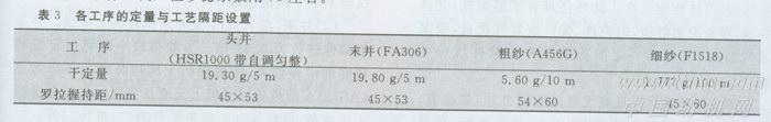 将自调匀整放在头并,末并不带自调匀整,以利于条干均匀度的提高;另外机后条子要注意平行喂入,否则会出现牵不开的情况。粗纱尽量加大捻度,以减少意外牵伸。我厂粗纱捻系数用75左右。