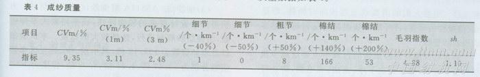 我厂用以上工艺开纺的Modal 19.4 tex纱达到乌斯特2001公报的25%以上的水平,纺出的布面光泽好,白星毛羽少,客户很满意。乌斯特测试的各项质量数据如表4。