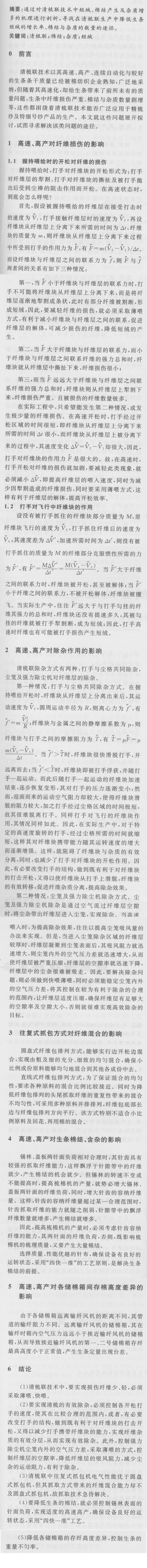 提高清梳联生条质量途径的探讨