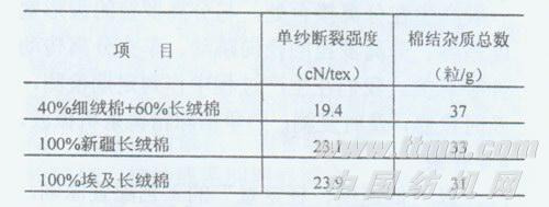 根据该丝光棉线对强力及白星的要求,在配棉时进行多种选配,对J9.7品种试纺进行强力及棉结测试,试验结果下表