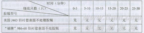 "福牌"986-60型及美国J463型铝衬套表面不处理胶辊的空绕测试情况: