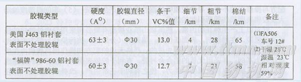 .我们杭州中汇棉纺织有限公司,通过几个月的上车跟踪测试观察,在同锭、同粗纱、同胶辊直径及相同的温湿度条件下对两类胶辊上车开纺时,对成纱质量进行了认真和实事求是的比较。