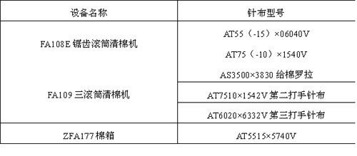 1、清棉机自锁针布的开发 清棉机是清梳联流程中最主要的除杂设备。最初,由于清棉机用针布齿高大,基部厚,在研制过程中曾走过弯路,遭遇过失败的打击。齿高精度、节距误差,基部硬度、热处理工艺等问题曾困扰过我们。我们凭借白鲨人锲而不舍的精神,克服种种困难,研制成功四刺辊开棉机针布、进而研制出FA108E锯齿滚筒清棉机、FA109三滚筒清棉机自锁针布。(针布型号详见附表)