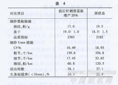 4.4 前后均装固定针刺型盖板对梳棉机增产性能的质试对比