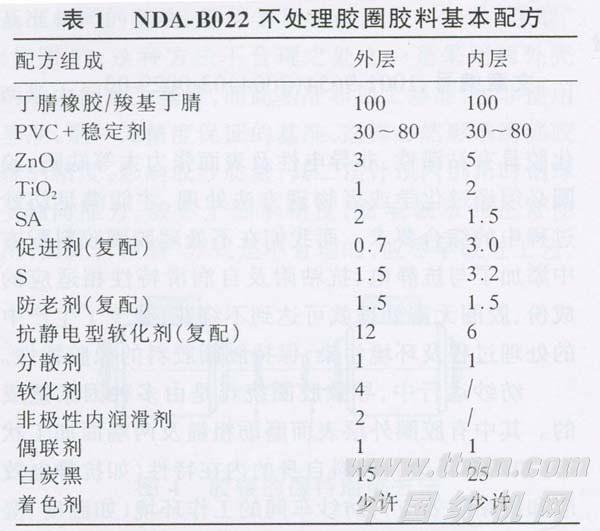 基于上述配方的设计途径,经过反复地调整试验,确定了胶料的基本配方(见表1)。