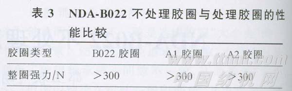NDA-B22不处理胶圈与表面处理胶圈A1、A2胶圈性能比较见表3。