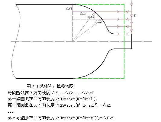 (2)轨迹计算.在不同工艺条件需设定不同的进给量,需要计算每段进给路径中的圆弧在XY方向的长度,计算过程根据图5计算如下。
