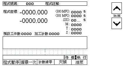 手动画面下按上下翻页键可以调整G01和手动进给倍率。