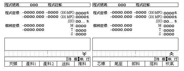 (1)送料进/退(M06/M07):将工件送到一个可以推料进夹头的位置,加工过程中送料架不能停在这个位置。