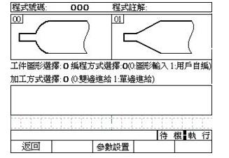 参数设置:按下进入参数设置画面。工件图形选择不同进入不同的参数设置画面。