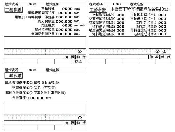 通过上下翻页键可在三个工艺参数设置画面间切换。