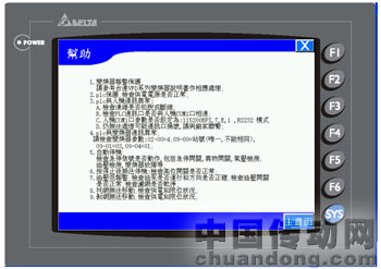 (5)帮助画面参见图10。由于人机界面是直接连接在控制器,故只要设计者将控制器信息表达在人机界面上,终端用户将可以了解到设备的各种运行信息,详细的向导将有助于使用者的维护。