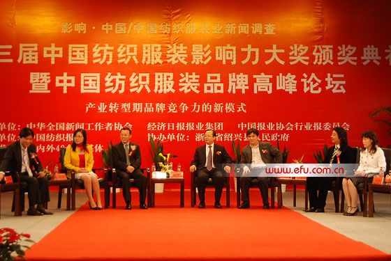 第三届中国纺织服装品牌影响力传媒大奖颁奖典礼暨品牌影响力高峰论坛在柯桥举行。