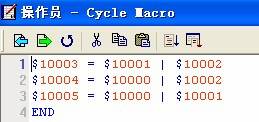 操作员必须通过口令才能登陆控制系统,操作员1~3具有不同的响应级别,级别依次降低,密码级别操作员1>操作员2>操作员3,即使用操作员1密码可以登陆操作员2和操作员3。三个按钮互相锁存,按下其中一个按钮后,其他两个按钮均无效,通过宏指令实现。操作员画面CYCLE宏如下所示: