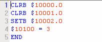 操作员3按钮生效位为$10005.0处于OFF状态,按下“操作员3”按钮,执行宏指令如下所示: