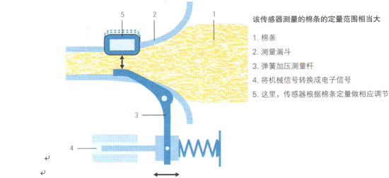 图1特吕茨勒并条机的漏斗式传感器的工作原理图