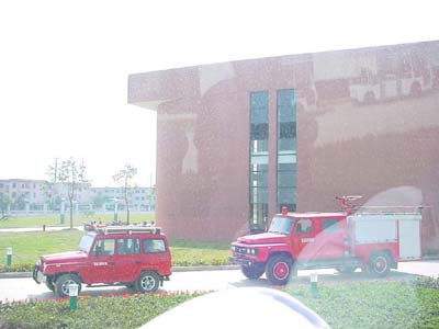 采访结束后,记者正准备离开时在飞跃集团的大门口发现了一大一小两辆消防车,仔细一看发现消防车并没有车牌,而在车身上有明显的“飞跃集团消防车”几个字(附图),原来是飞跃公司自己的消防车队。我们不知道飞跃集团还有多少厂区,但从拥有自己的消防车也可感受到飞跃的实力不一般。