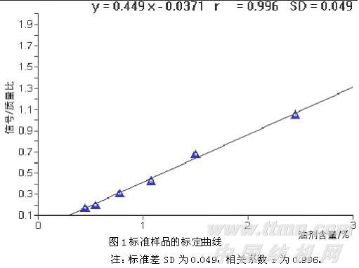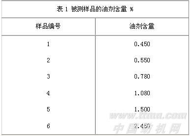 注:油剂含量事先用传统的索式萃取法测出值作为参考值