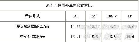 前区牵伸配置要三小,即前中罗拉中心距小、浮游区小及皮圈钳口隔距小。不论是双短皮圈还是长短皮圈及上、下销皮圈架的设计都力图达到三小要求。SKF、R2P、INA - V及HP等 4种国外牵伸形式的对比表明(表1),HP中心距最小,为14.4 mm。