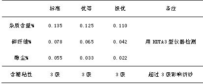 纺Belcoro针织纱时,前道工序的合理选配也十分重要,如前纺工艺选配不当,喂入条子含杂量超标和均匀度较差,均会造成纺纱时断头增加及纱线质量下降。