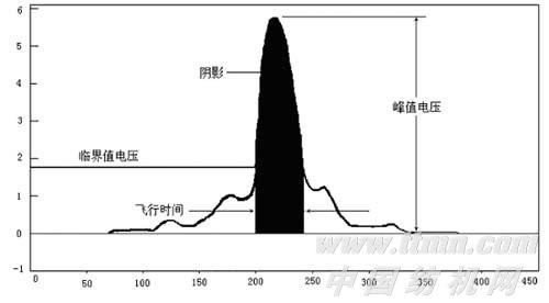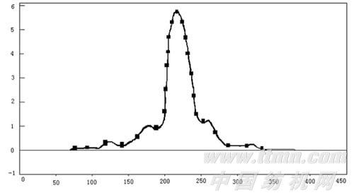 如图1 所示,纤维分离器将试样分开,形成三个主要的部分:飞花,杂质和微尘。飞花信道容纳纤维、短纤维、机械棉结和有纤维附着的籽屑;杂质信道容纳杂质、微尘,少许纤维碎片和大量少量附着或没有附着纤维的籽屑。在开松期间随纤维剩下的籽屑,被AFIS称作带籽屑纤维。这些批量的籽屑棉结,大多数可能在开棉、清花和精梳工序期间随好纤维留下。大量的籽屑,称作籽屑碎片,是AFIS杂质中左边部分,并且大多数能从纤维中清除掉。AFIS棉结分类模块检测籽屑棉结的粒数和尺寸。分类模块能够辨认不同的由纤维、纤维块、籽屑棉结等产生的电信号波形。这个改进的棉结模块采用一个数字信号处理器(DSP),分辨所有传进来的波形,计算棉结尺寸。图2a所示,一个典型的棉结波形值,用标准棉结模式判断。图2b所示同一信号被DSP系统分析。DSP系统有记录和分析已存在的棉结信号的全部信息的能力,因此,在样品特性附近提供许多的信息。分类软件以一个标准的波形比较各样品波形,测定大部分与标准波形相似的波形进行分类。这些标准波形是检测运行通过模块传感器的籽屑棉结与机械棉结,和检验多数模拟使用手检纤维棉结和籽屑棉结的基础(参考波形)。