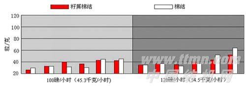 下图表明(图8、9和10),三种梳棉机工艺参数在籽屑棉结和传统棉结清除上的影响。三种梳棉机工艺参数是:梳棉机产量(用磅/小时或千克/小时表示)。盖板速度和盖板到主锡林隔距。