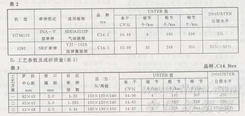 的DTMl29型细纱机。配置了气动加压V型牵伸装置。通过近一年的使用,它以稳定的纺纱性能,优良的产品质量,取得了良好的效果。