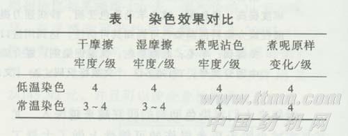 由表1可见,低温染色摩擦牢度比常温染色提高半级。