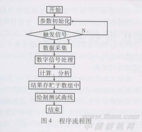 面板上的数据采集、关闭仪器、保存数据等命令按钮通过回调函数来实现各自的功能,整个源代码中数据采集的回调函数caiji是程序的关键,其程序框图如图4所示。